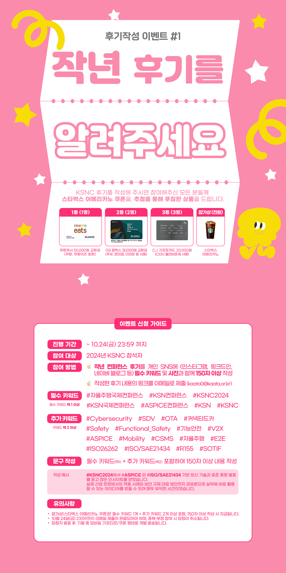 참가상(스타벅스 아메리카노 쿠폰)은 필수 키워드 1개 + 추가 키워드 2개 이상 포함, 150자 이상 작성 시 지급됩니다.