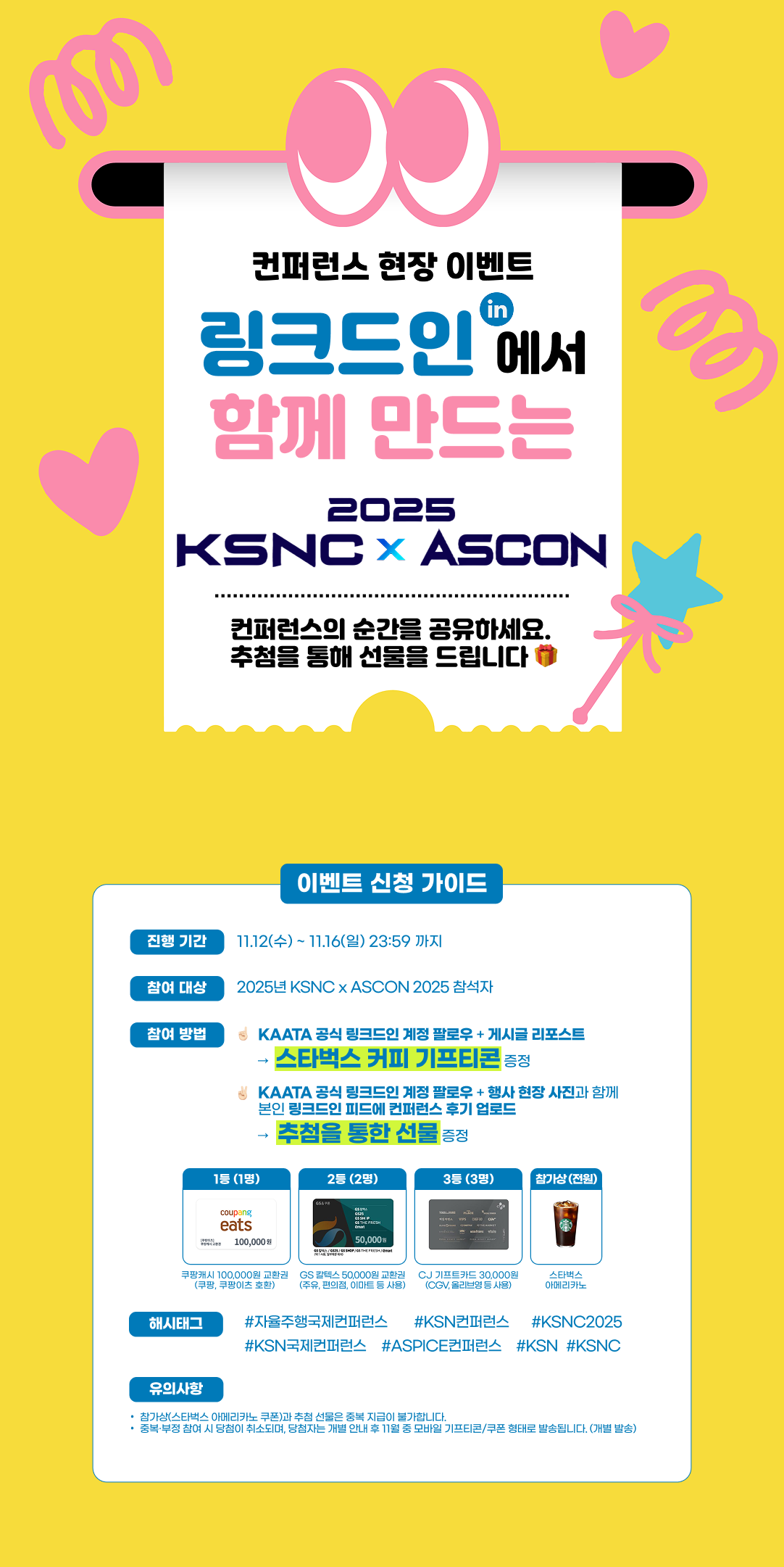 1. KAATA 공식 링크드인 팔로우 + 컨퍼런스 게시글을 공유 하면 스타벅스 커피 기프티콘을 드려요!